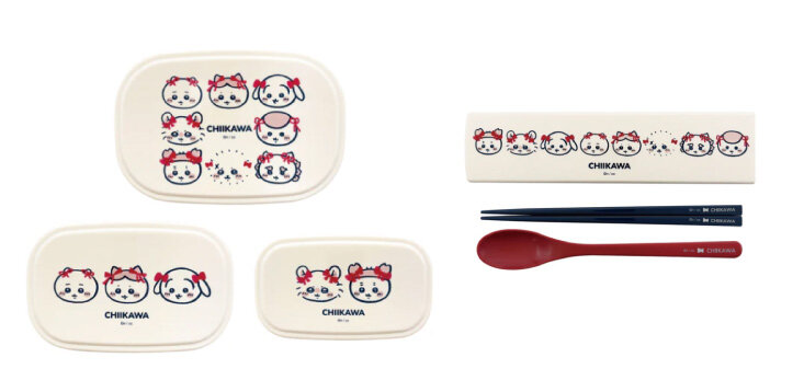 リボンをつけたちいかわたちが可愛い、落ち着いたカラーのシリーズは大人にもおすすめ。大・中・小の3サイズが入れ子になった容器セットに、お箸&スプーンのコンビセットでランチタイムが楽しみに!